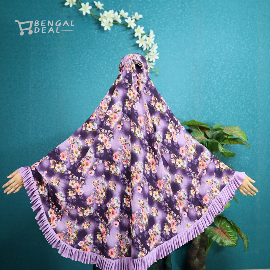এই খিমারটি তৈরি হয়েছে উচ্চমানের সালাত কাপড় দিয়ে, যা হালকা ওজনের, নরম এবং শরীরে পরতে অত্যন্ত আরামদায়ক। কাপড়ের প্রিমিয়াম কোয়ালিটি নিশ্চিত করে দীর্ঘস্থায়ী ব্যবহার, যাতে বারবার ধোয়ার পরও রঙ ও প্রিন্টের সততা অটুট থাকে। ফ্যাব্রিকটি নন-ট্রান্সপারেন্ট এবং মসৃণ টেক্সচারযুক্ত, যা গরমে পরতে সুবিধাজনক এবং ঘাম শোষণে সহায়ক।