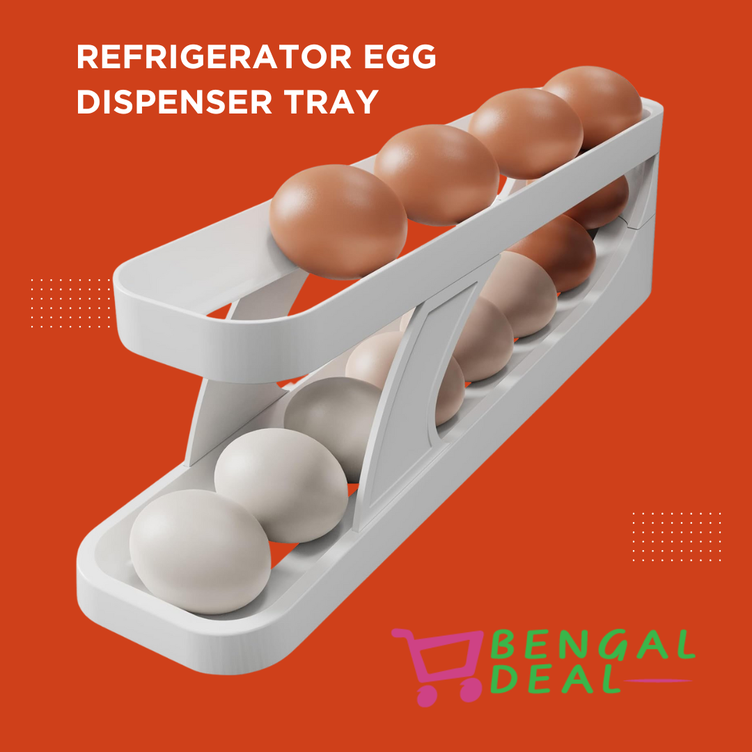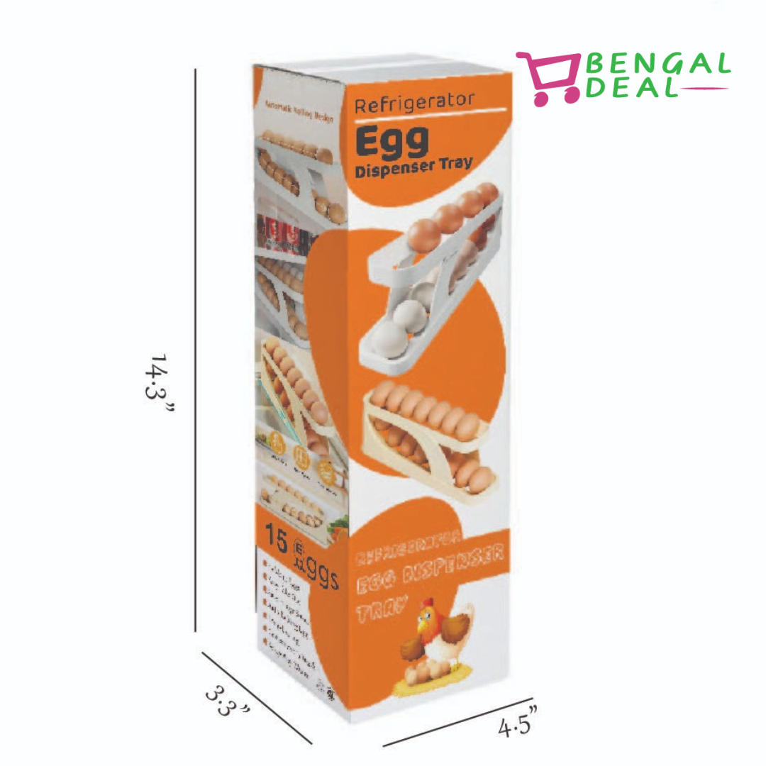 Refrigerator Egg Dispenser Tray | Space Saving Automatic Roll-Down Egg dispenser | Slide Egg Storage Box | Refrigerator Side Door Storage Box | Automatic Scrolling Egg Holder Tray